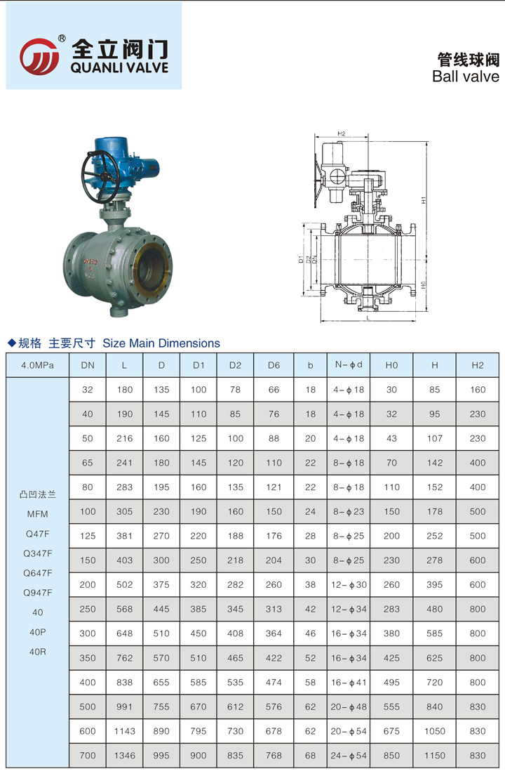 固定球:球閥的球體是固定的,受壓后不產(chǎn)生移動。固定球球閥都帶有浮動閥座,受介質(zhì)壓力后,閥座產(chǎn)生移動,使密封圈緊壓在球體上,以保證密封。通常在與球體的上、下軸上裝有軸承,操作扭距小,適用于高壓和大口徑的閥門。為了減少球閥的操作扭矩和增加密封的可靠程度,潤滑油,以形成一層油膜,即增強了密封性,又減少了操作扭矩,更適用高壓大口徑的球閥。